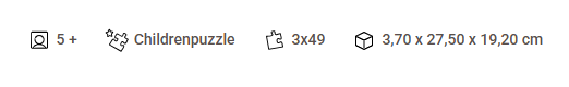 Puzzles help develop hand-eye coordination, fine motor skills and problem-solving through repeated practice while delivering a galaxy of fun! Our three 49-piece puzzles have large, durable pieces little hands can easily hold on to for lots of repeat fun and come with handy, full-size picture guides. Clean-cut pieces and Ravensburger’s tight interlocking fit provide a pleasurable puzzling experience for children and their adult helpers alike. Our Perfect Age Fit criteria ensures this puzzle is fun and educational for ages 5 and up! Made in Czech Republic.